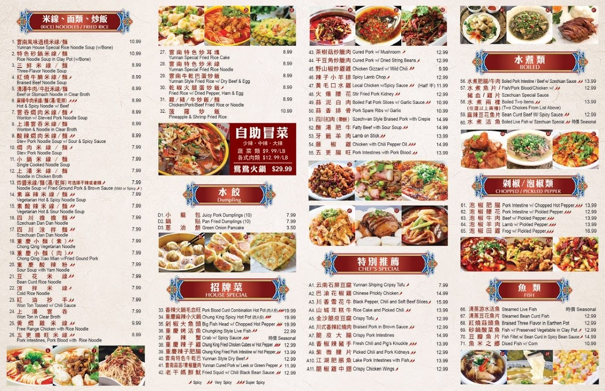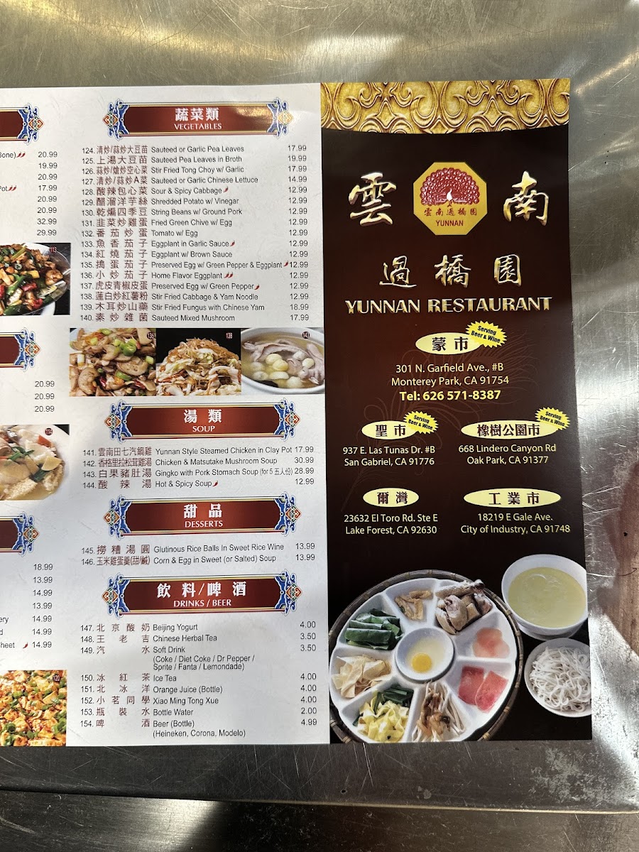 The menu at Yunnan Restaurant 云南过桥园 offers a straightforward and inviting selection of traditional Yunnan and Sichuan dishes. It’s a place where you can find comforting rice noodles, warming soups, and a variety of flavorful dry pots that bring a casual yet satisfying dining experience. Whether you’re stopping by for a quick lunch or sharing a leisurely dinner, the dishes here suit moments when you’re seeking both familiar comfort and a bit of bold spice.